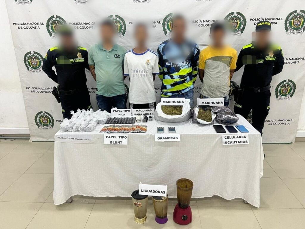 Mediante la ejecución de una diligencia de allanamiento, se materializaron cuatro capturas en flagrancia por el delito de Tráfico, Fabricación o Porte de Estupefacientes. Los capturados fueron identificados como: